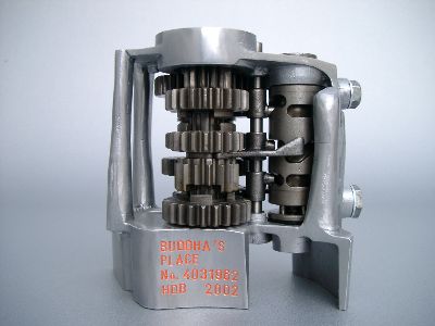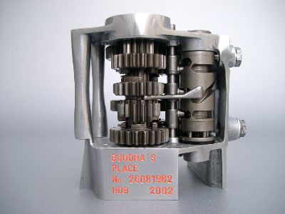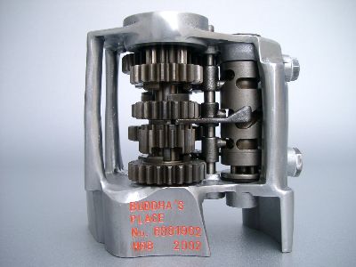 10 identische Kleinplastiken aus Motorradgetrieben mit individueller Seriennummer